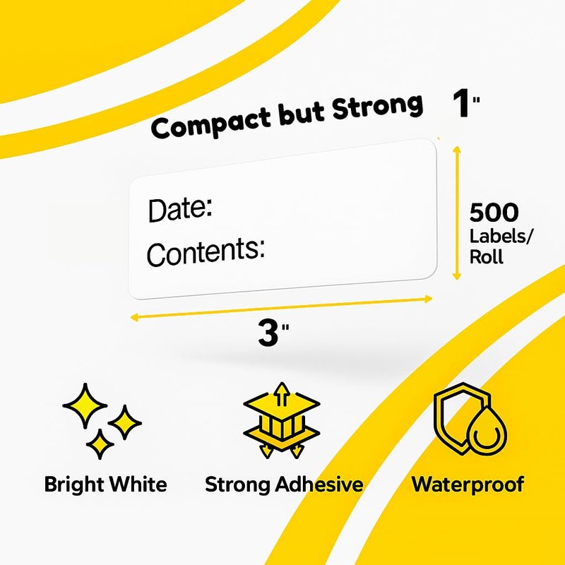 - 1"x3" Freezer Labels: Pre-printed with “Date” & “Contents” so you never forget what’s in the freezer or when it was stored. Compatible with Ziploc freezer bag and other food storage brands. Works with ballpoint pens and permanent markers. 500 labels per roll = over a year of tidy, hassle-free storage