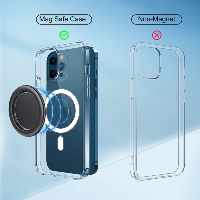 - Easy to Use: Use the metal disk base with the mag safe official phone case for best results. Stick the socket stand or finger ring holder on the circular groove, move it to the back of iphone 15/14/13/12 series or mag safe case built-in magnet ring, the magnet base plate will automatically snap into place! NOTE: Only work with phone grips or phone sockets with round bases. Inner diameter is 1.79in and outer diameter is 2.24in. Please check the size and shape of your accessory before purchasing.