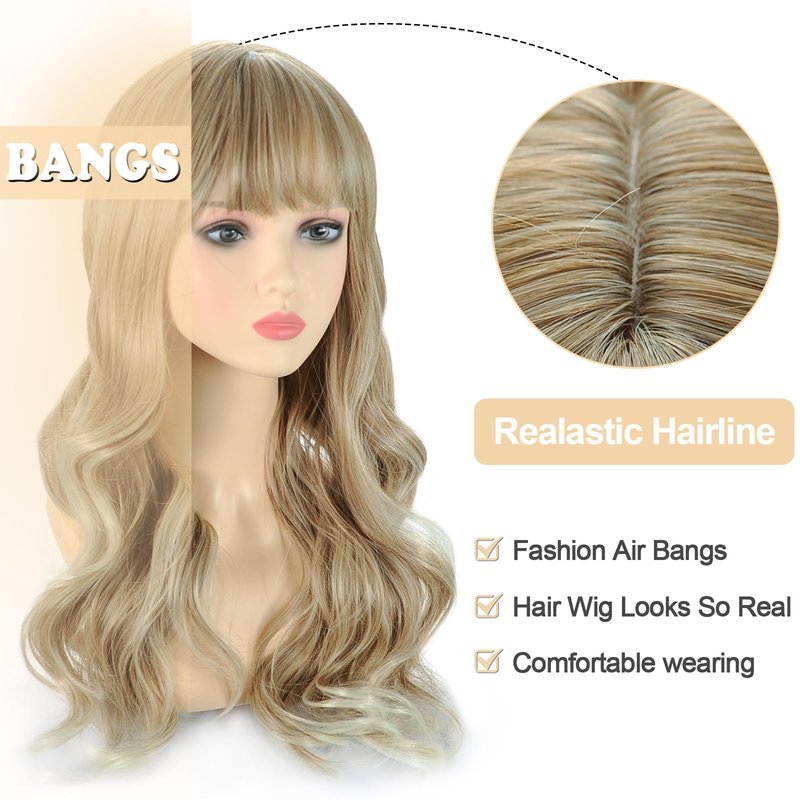 - 【Premium Material】:Long Blonde Wigs With Bangs is made of high-temperature resistant synthetic fiber and stands heat up to 160°c(320°f). The hairline is made hand-tied, which makes the hair look more real. Easy to comb and not easily tangle and hair loss.