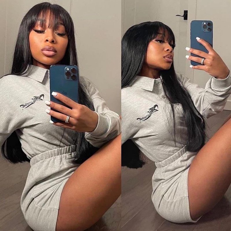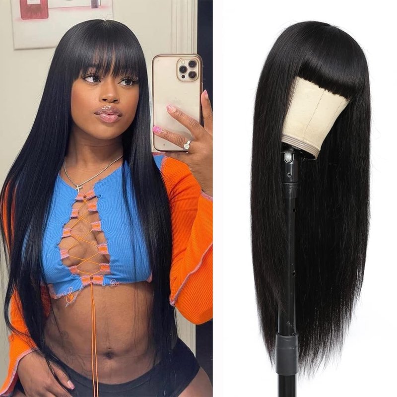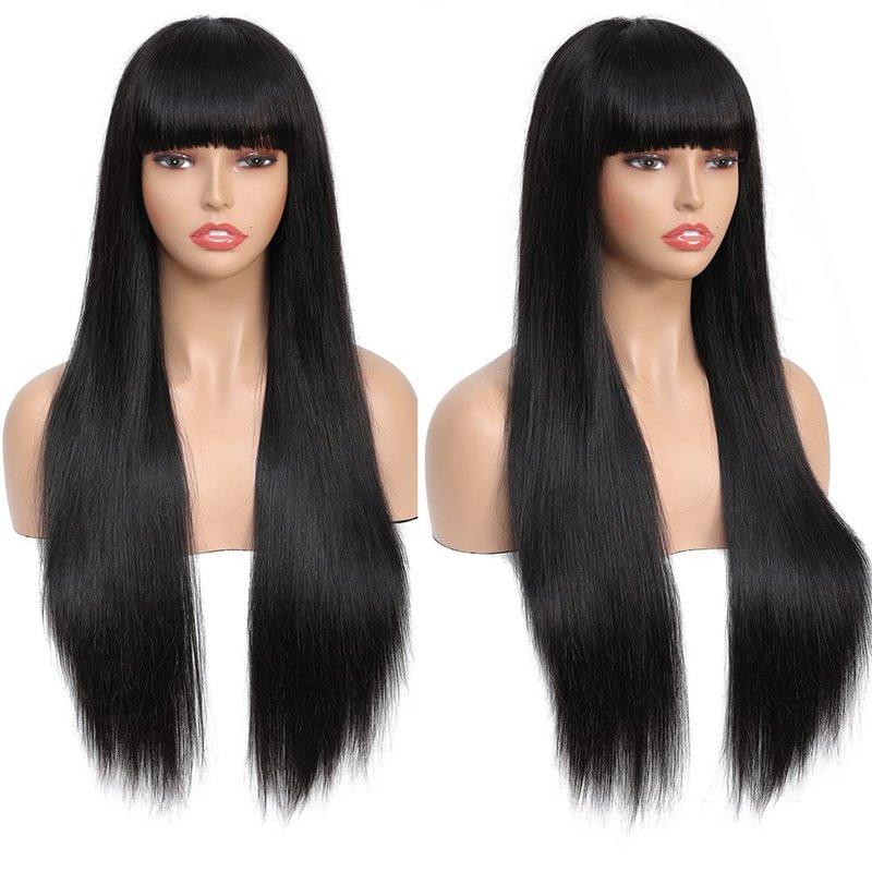 REMY HAIR Bang Wigs 100% Human Hair Wig with Bangs 22 Inch Glueless Machine Made Wigs Unprocessed Brazilian Virgin Human Hair Wigs for Women Natural Color
