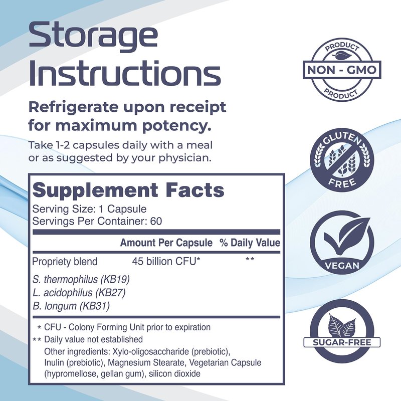 Helps maintain kidney function and stabilize healthy gut flora. Comprised of probiotics that are Generally Regarded as Safe for Consumption and is manufactured adhering to all the Current Good Manufacturing Practices (cGMP). No hidden ingredients, free from gluten, sugar, GMO’s, Lactose Casein, and animal products. is comprised of 45 Billion Colony Forming Units for maximum efficiency and packaged in an acid-resistant capsule that ensures that the probiotics make it to the bowel.