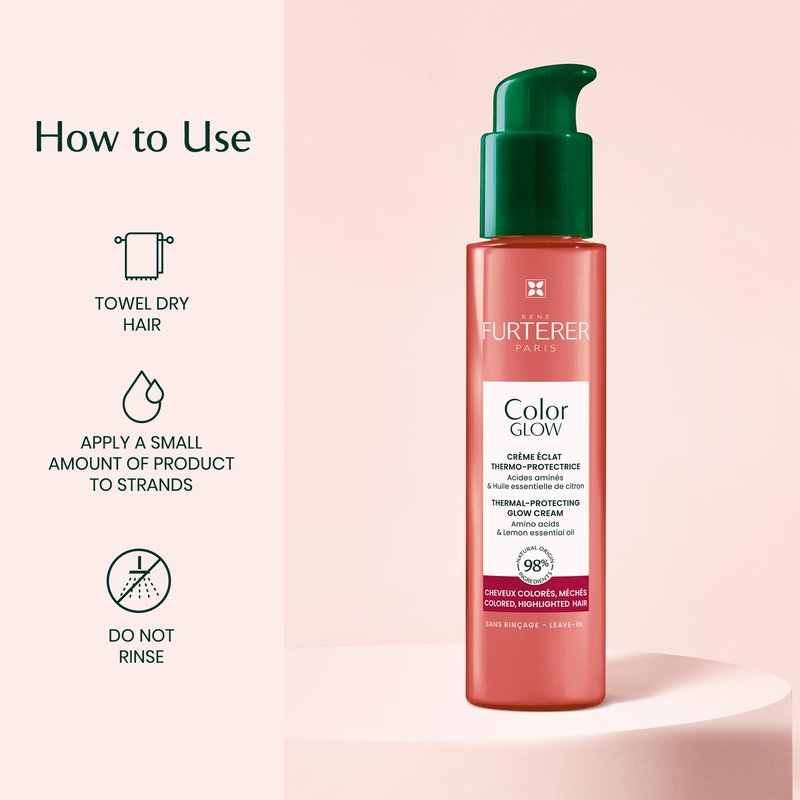 Rene Furterer Color Glow Thermal-Protecting Glow Cream - Amino Acids & Lemon Essential Oil 3.3 fl oz.