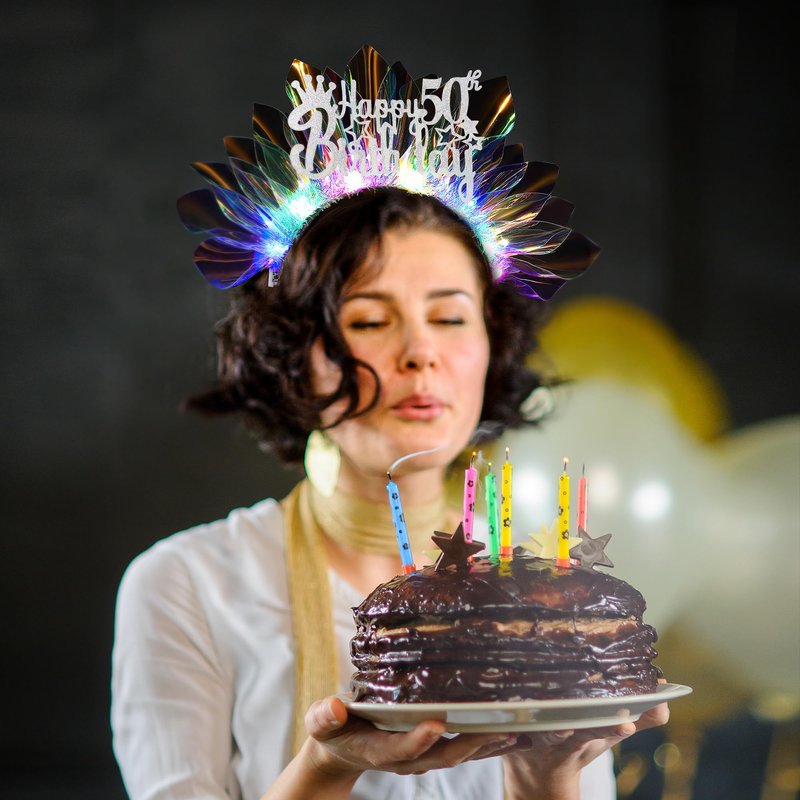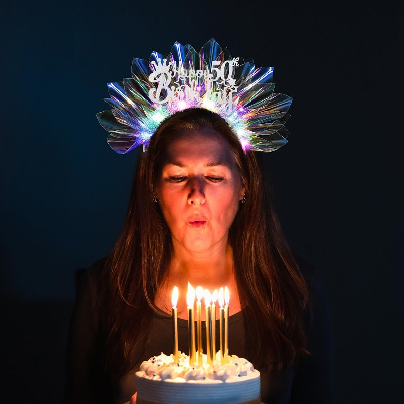 - [Gift Ideas]: Our light up laser birthday party headband is great gift for women, Our 50th birthday headband will surprise your friends and family, unique and thoughtful, bringing joy and excitement to their big day.