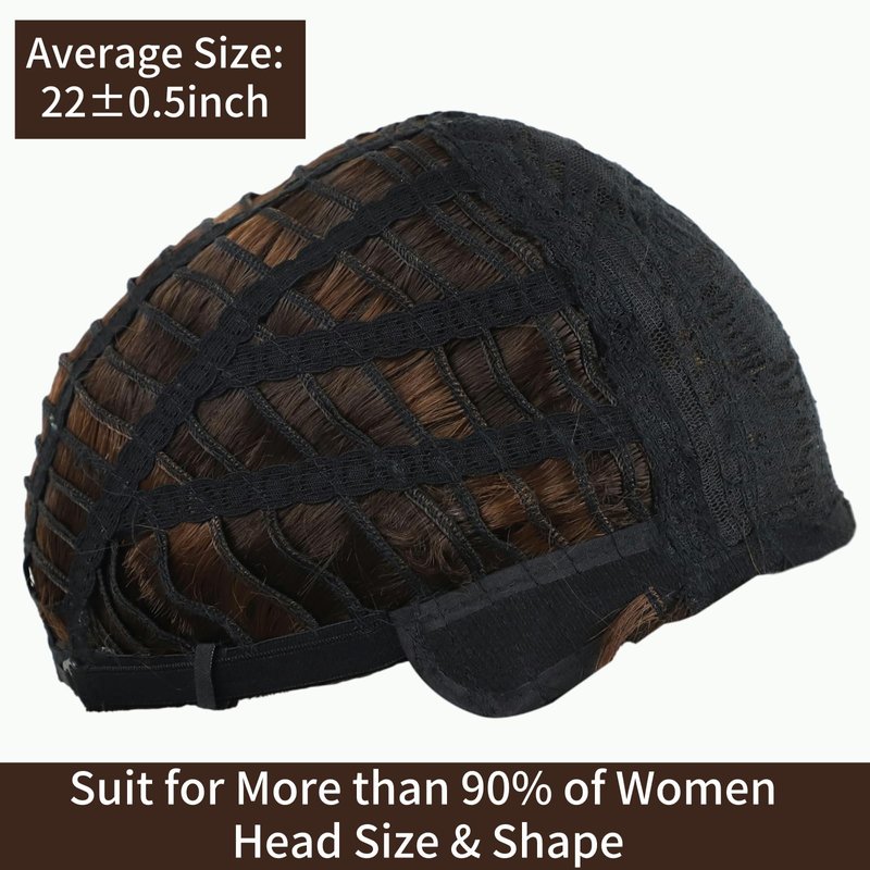 - The brown curly wig has average size 22±0.5inch, suit for most women head size, two elastic straps can be adjusted for tightness between different gears, basic wig cap is very breathable,all can give you a comfortable wearing feeling, easy wear it all day