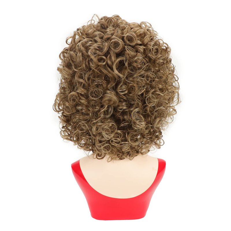 - Made of high quality heat-resistant synthetic fiber, this brown curly hair is soft and bouncy, brown mixed with blonde, matte and natural, every curl is showing your charm outwards