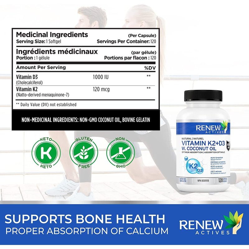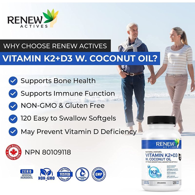 - Enhanced Immune Function: Renew Actives' D3 K2 Supplement, enriched with Coconut Oil, fortifies your immune system, empowering your body's natural defense mechanisms for peak health. It helps strengthens immunity, ensuring robust well-being.