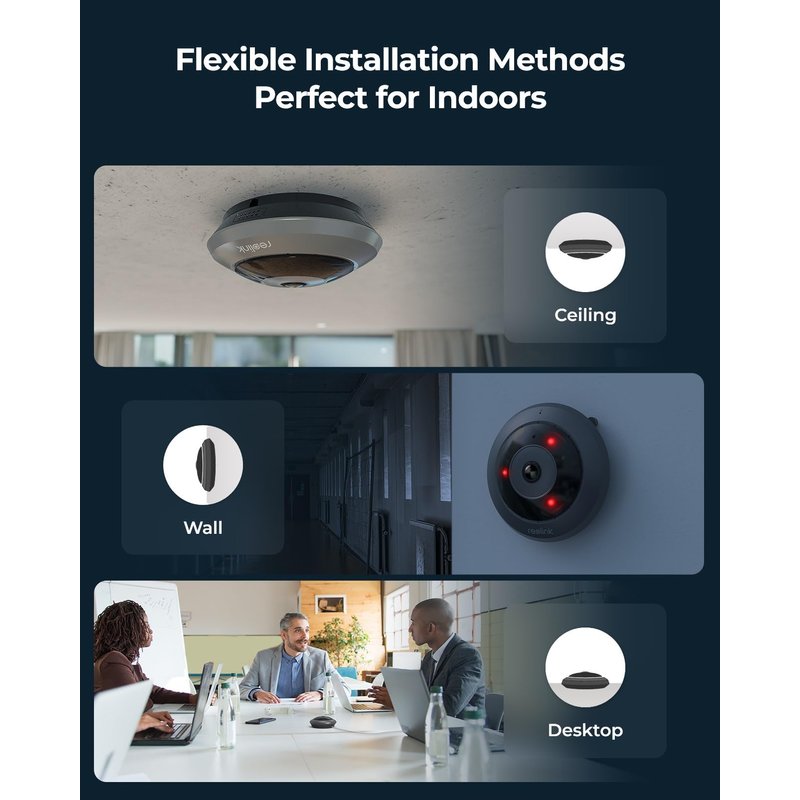 REOLINK PoE IP Fisheye Camera with 360° View, 6MP HD Indoor Camera for Home/Office Security, Smart Human Detection, Two-Way Talk, Ceiling/Wall/Desk Installation Choices, Multiple Display Views, FE-P