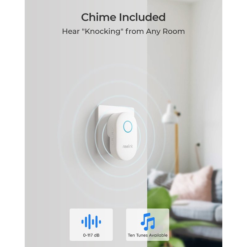 - Chime V2 Included! Plug the chime included to any electrical socket at any room and be confidently alerted when visitors "knock". You can choose 1 of its 10 tunes and adjust its volume.