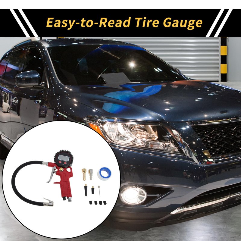 REPAIROCK Digital Display Tire Pressure Gauge 3-200PSI Regular Air Pressure Gauges for Tire with Hose Red 1 Set