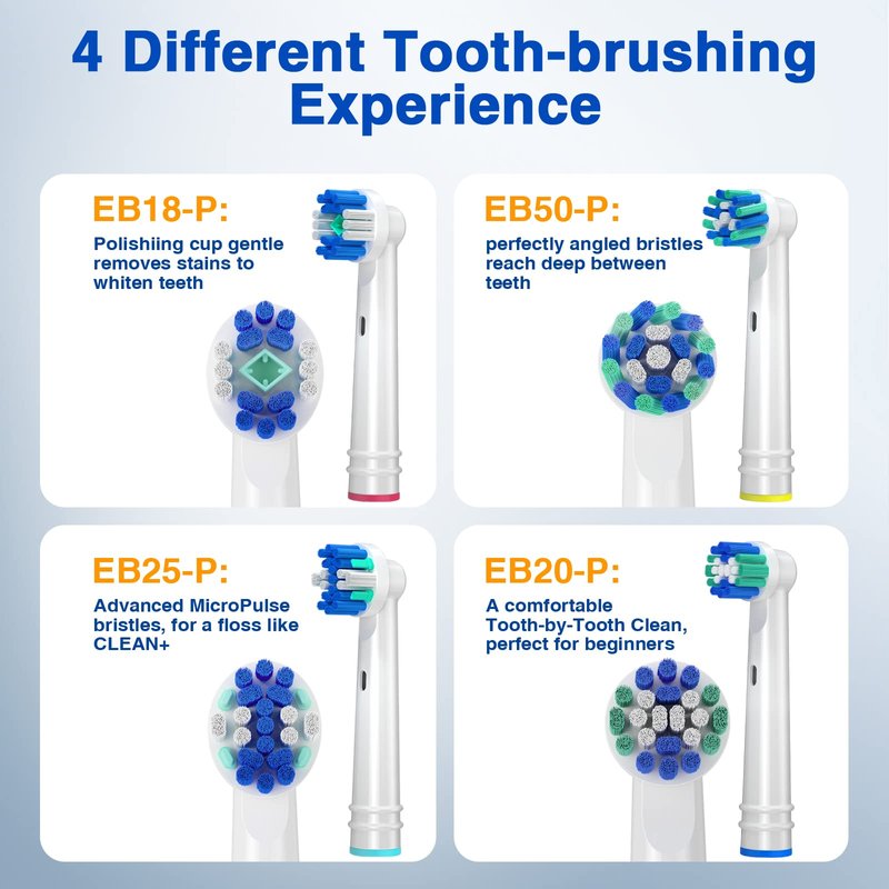 - 16 Pcs Oral B REPLACEMENT TOOTHBRUSH HEADS: Including 4 Floss Action, 4 Cross Action, 4 Precision Clean & 4 3D White, Homelink electric brush heads fit all your personal needs. (NOTE: Homelink is not associated with Oral B)