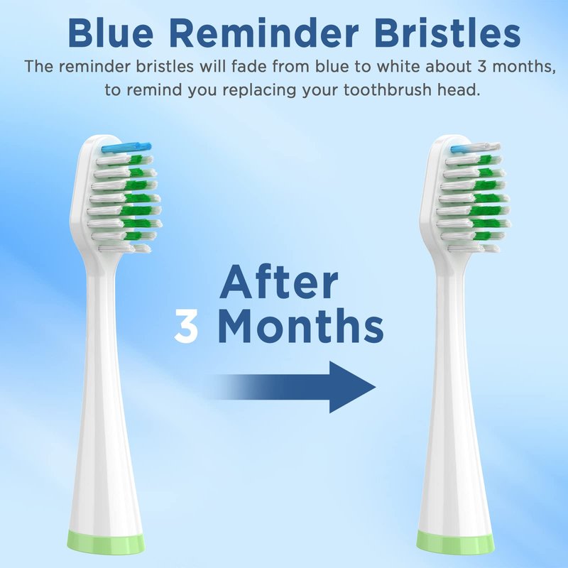 - Blue indicator bristles will fade when a replacement is needed, usually 3 months.