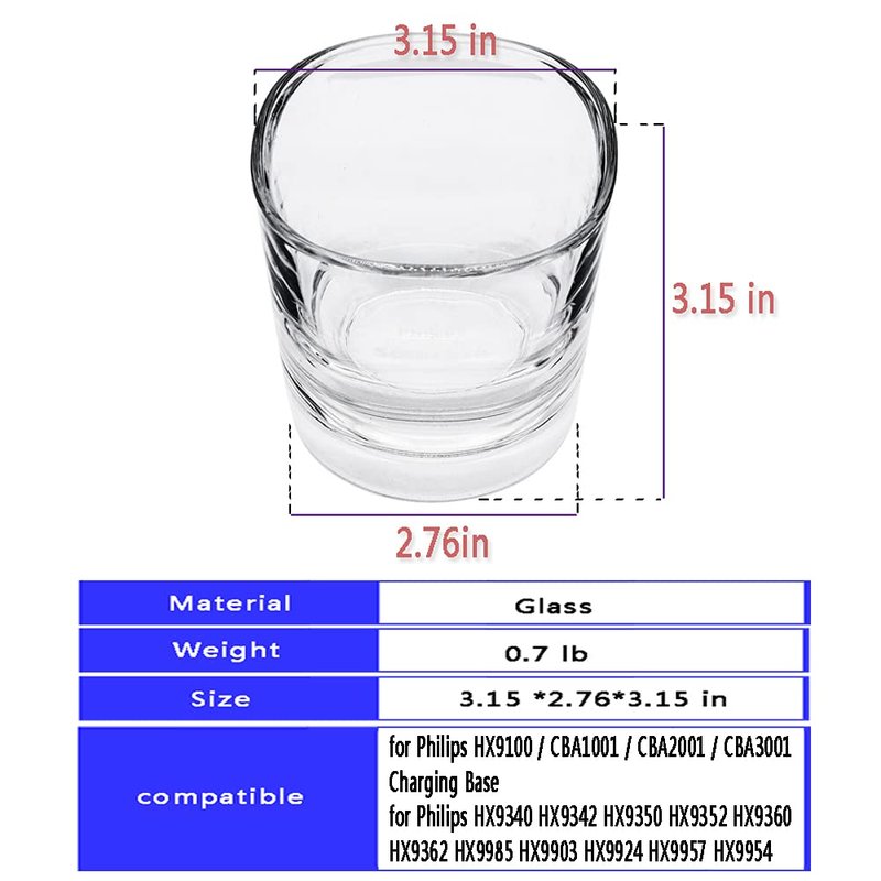 - Compatible with charger models: Replacement Sonicare charger glass cup for Philips HX9100 / CBA1001 / CBA2001 / CBA3001 Charging Base.