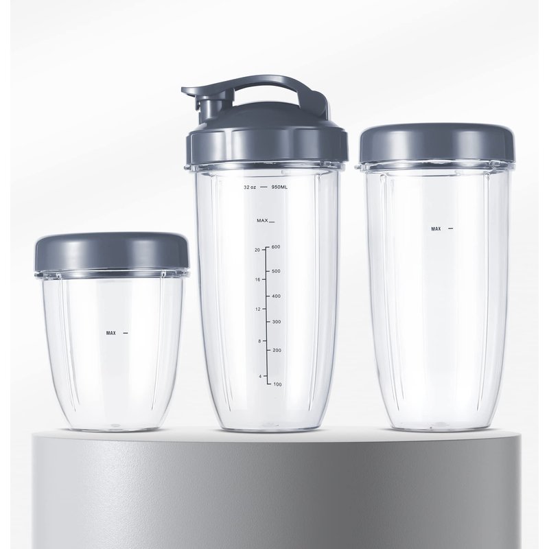 Replacement Cups Kit 18oz Short Cup 24oz Tall Cup 32oz Colossal Cup with Flip-Top To-Go Lid and Stay-Fresh Resealable Lid Compatible with NutriBullet 600w and Pro 900w Blenders
