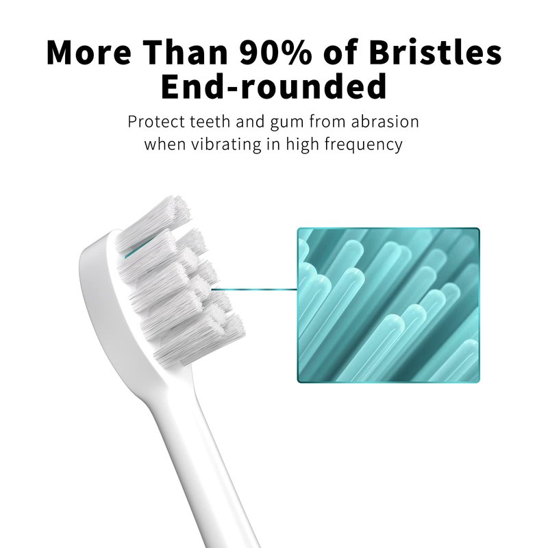 - Teeth Protection: 95%-98% top of bristle rounded before packaging. Just considering protecting your teeth when brushing in high vibration. The teeth enamel would get worn if bristle was not rounded.