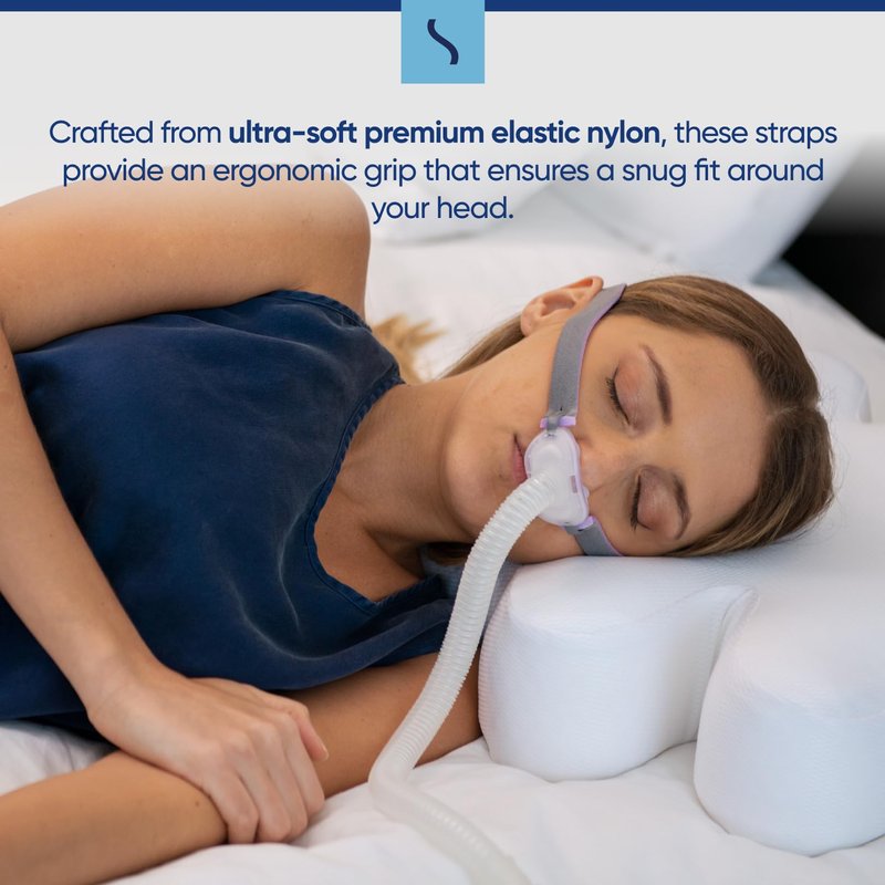 - Enhanced Sleeping Comfort: Experience unparalleled comfort with Snugell’s Headgear Strap Replacement designed specifically for the ResMed AirFit P10 Nasal Pillow CPAP Mask. Crafted from ultra-soft premium elastic nylon, these straps provide an ergonomic grip that ensures a snug fit around your head, promoting an uninterrupted, full night's sleep