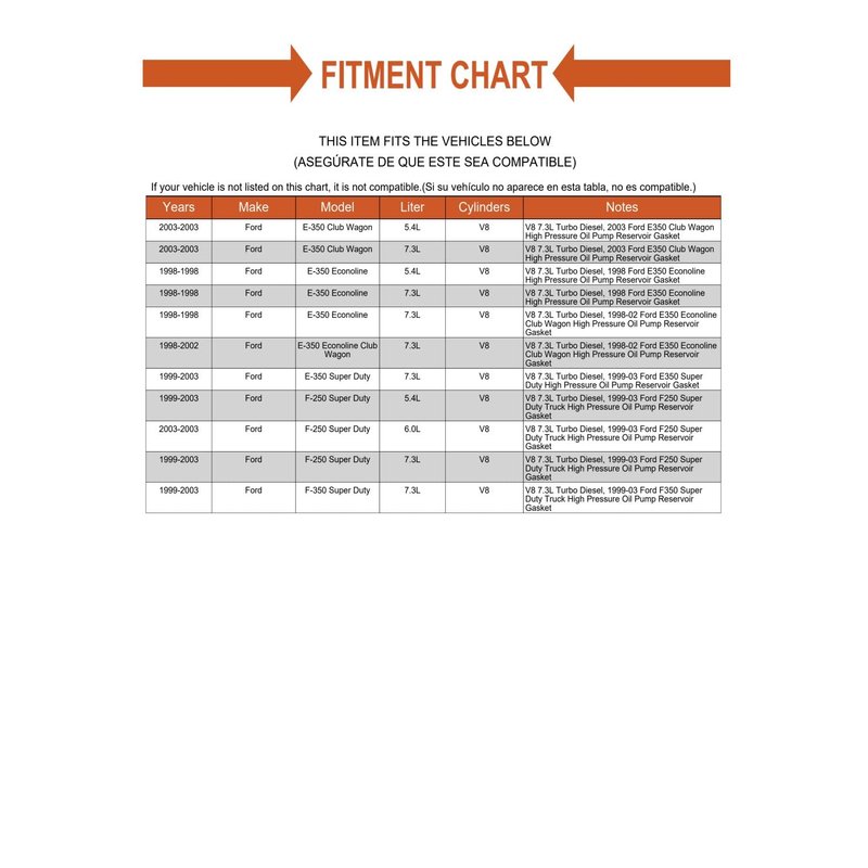 - 【❗Fitment Details❗:】Fits V8 7.3L Turbo Diesel, 2003 Ford E350 Club Wagon High Pressure Oil Pump Reservoir Gasket