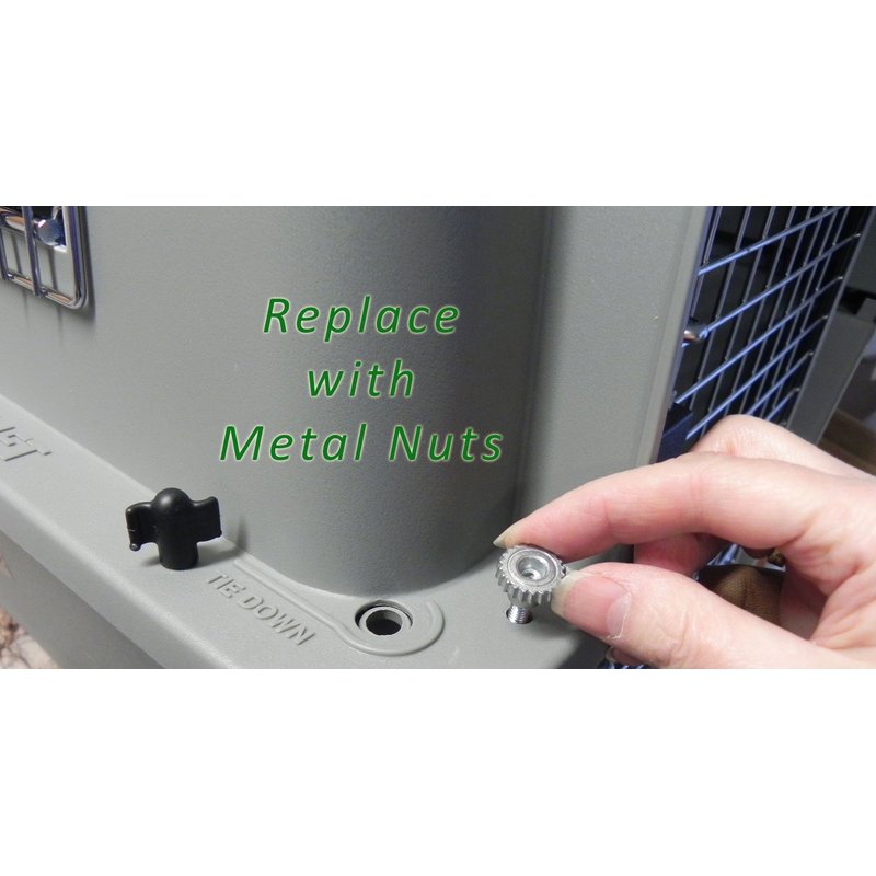 - Solid Metal Nuts fit existing Bolts on Sky Kennel, Vari Kennel and all Petmate Aspen Kennels