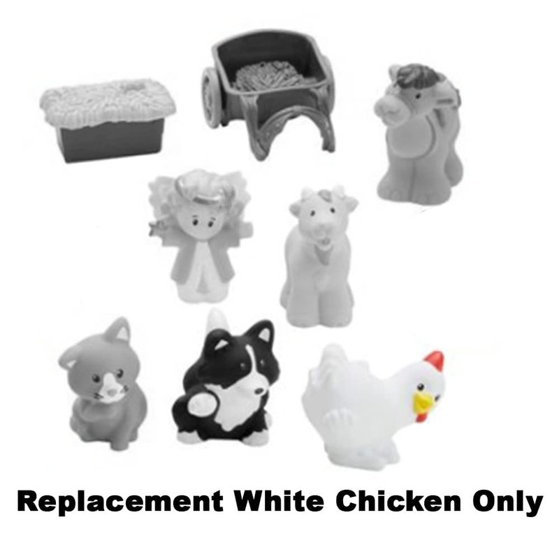 What's included? Replacement White Chicken Figure -- This Replacement Part works with Little People Nativity Advent Calendar - Listing is for Replacement White Chicken Figure ONLY -- Discover a new surprise every day with the Little People Nativity Advent Calendar. Toddlers will love opening the windows to find a new friend or a fun, holiday-themed accessory every day as they count down to Christmas. By December 25th, they’ll have a whole set of adorable toys and a fold-out play set to bring the magic of Christmas to life! Kiddos can even practice their numbers and counting skills with this nifty calendar. -- This set is sold separately and is not included with the Replacement Parts. Description is for Little People Nativity Advent Calendar identification purposes only. _________________________________________________ Oh no, where did it go? Isn't it just the worst when you lose the most important part to a toy? Never fear, we've got you covered! We carry a large variety of replacement parts for your toy OR baby product. -- This Replacement Part is for Item # FPT07 - Little People Nativity Advent Calendar . Styles and Colors may vary.