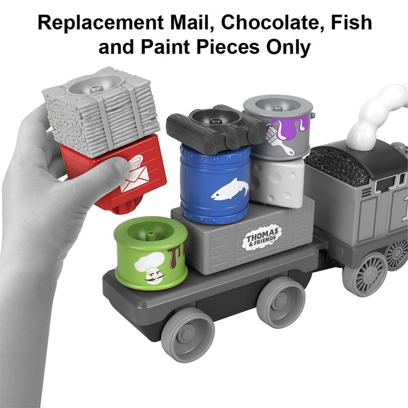 These are replacement Mail, Chocolate, Fish and Paint Pieces for Thomas and Friends Wobble Cargo Stacker Train Playset - Item # GWX07.