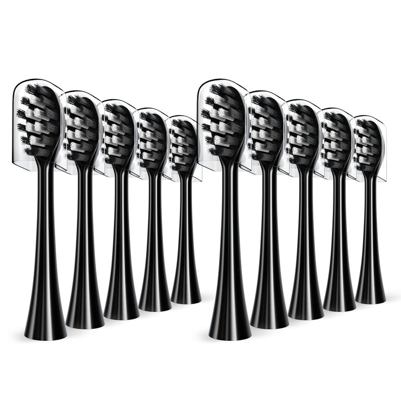 Replacement Toothbrush Heads Compatible with Gleem Electric Toothbrush, W Shape Design Planted with Nylon Bristle Black 10 Pack (Black)