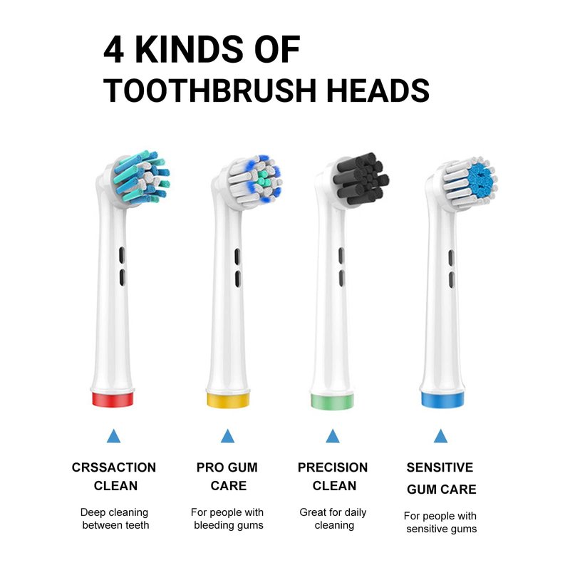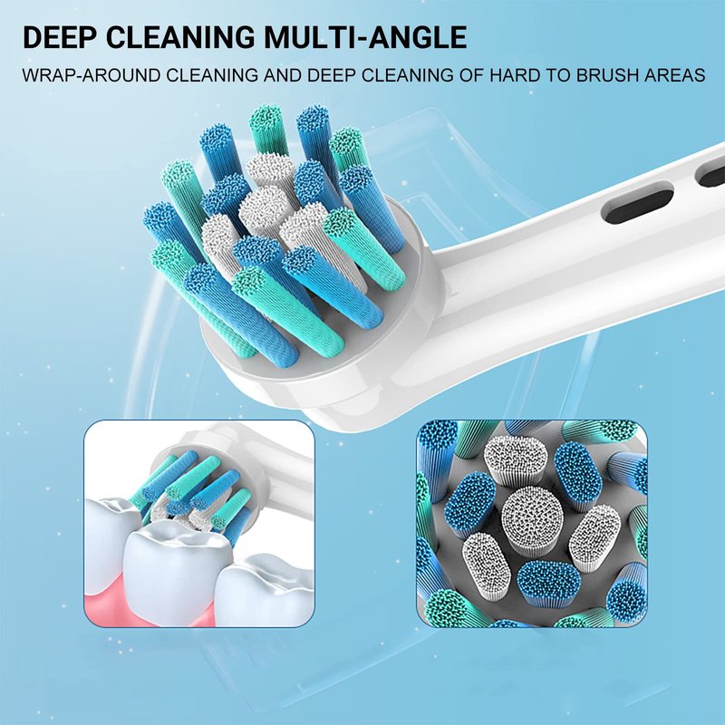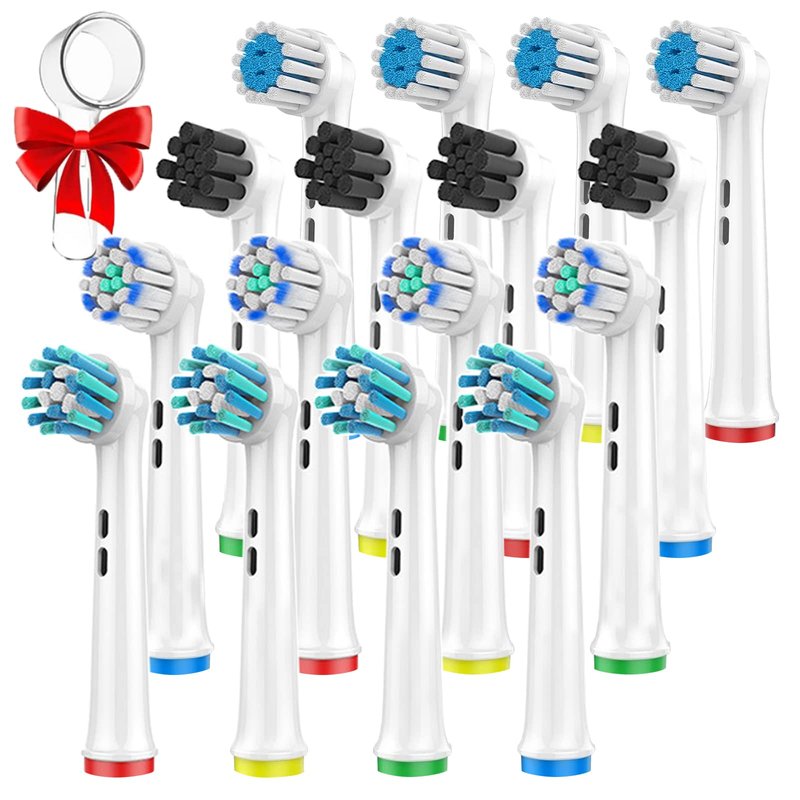 Including 16 pcs toothbrush heads, so that you can save more and replace at any time. There are 4 color rings to distinguish them and allow you to pick up your own brush head so that you can share with your family.The slightly long bristles at the tip can reach the blind area of the mouth for comprehensive cleaning, fresh breath, prevention of tooth decay.For a Tooth-by-Tooth Clean, Soft bristles for a comfortable clean, for superior plaque removal. Extra soft bristles for sensitive gums provide a superior& gentle cleans. Ideal for those who want to brush their teeth gently but effectively and people with sensitive gums.Brush head is designed with precise angled bristles that can reach deep between teeth cleaning around and remove more plaque along the gum line and in between teeth than a manual toothbrush.