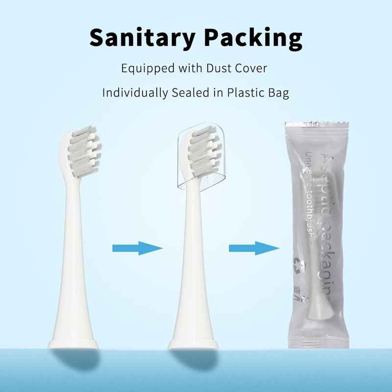 - 【Sanitary Packed】: Each toothbrush head equipped with dust cover then sealed into plastic bag and together packed in paper box. Three layers of protection avoid dust pollution during packing and transportation. Also, dust cover is perfect for travel, keeping your head free from germs & stains.