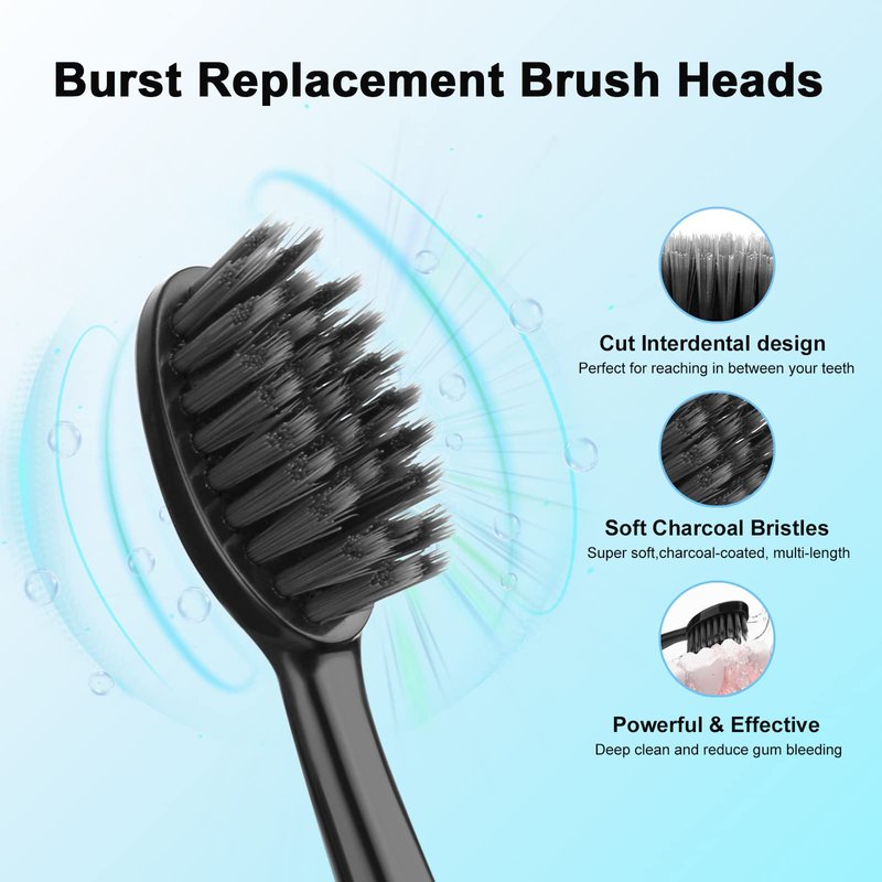 Burst original and pro sonic toothbrush heads, Super Soft Charcoal-Coated Bristles