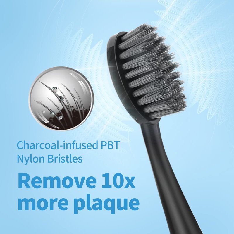 - Super soft charcoal-black PBT nylon bristles help remove stains, deep clean and whiten teeth while gentle to enamel and gums