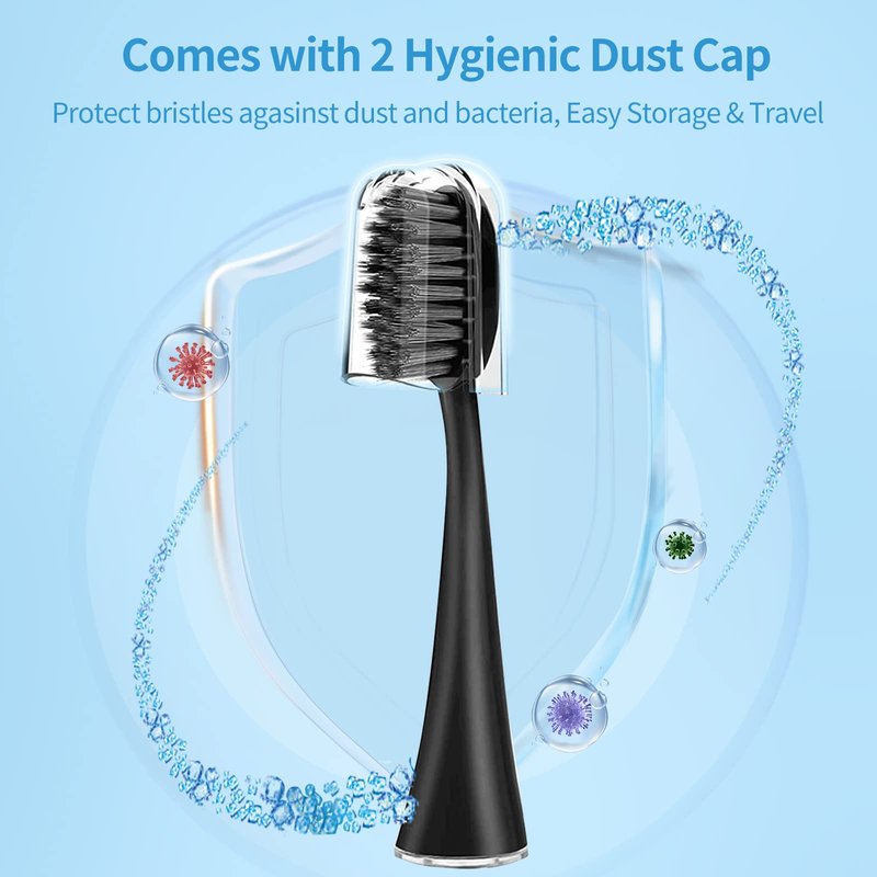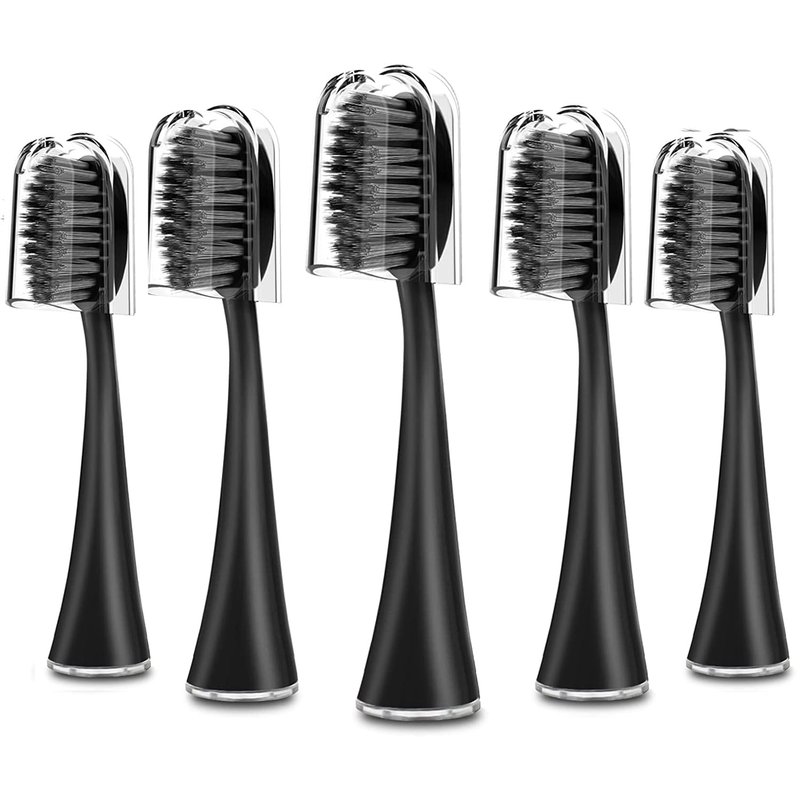 Replacement Toothbrush Heads for Burst Sonic Toothbrush with Dust Cover Caps, Soft Charcoal Bristles for Deep Clean, Black, Pack of 5