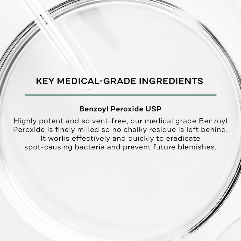 This advanced 10% Benzoyl Peroxide topical spot treatment works to clear acne and prevent future blemishes from forming. It's dermatologist-developed with solvent-free Benzoyl Peroxide USP for maximum potency and efficacy to help eradicate blemishes overnight. Apply daily then gradually increase to 2 – 3 times a day or as directed by your doctor. Pairs well with our BP 5% Acne Wash. Dermatologist recommended and boasting over 40 years of skincare expertise, Replenix uses only the purest and most stable form of actives in our formulations. No synthetic fillers, solvents, or preservatives — ever.
