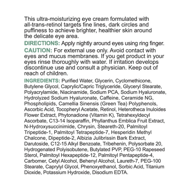 - An ultra-moisturizing, gentle eye cream for fine lines, dark circles, and puffiness.