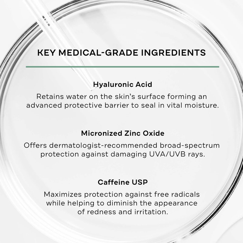 - A medical-grade, transparent mineral blend of Zinc Oxide offers superior, physical, dermatologist-recommended broad-spectrum protection against damaging UVA/UVB rays.
