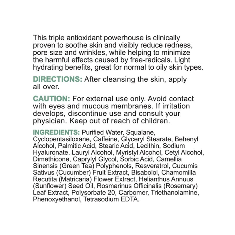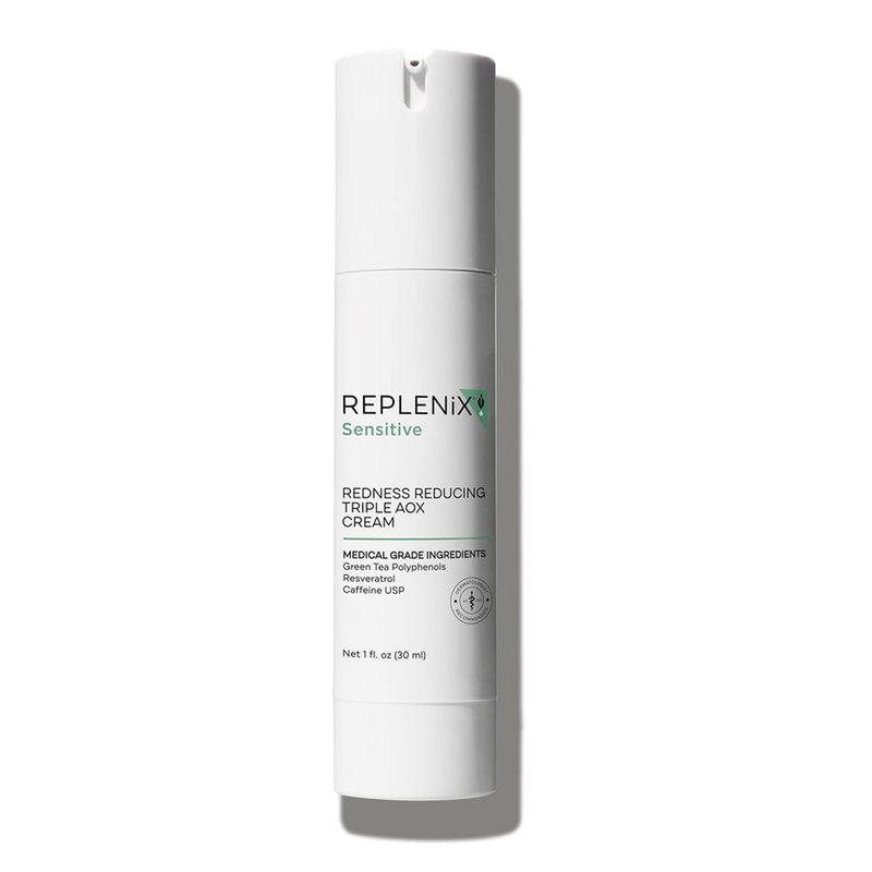 Redness Reducing Triple AOX Cream is a clinical-strength moisturizer proven to soothe the skin and reduce irritation with a triple-antioxidant complex to help minimize redness while protecting from free-radical damage. Resveratrol and clinical-grade Caffeine further enhance antioxidant activity to diminish redness while soothing and hydrating the skin. Ideal for sensitive skin prone to redness and irritation, this moisturizer helps repair the skin barrier for a more even tone and softer texture. Use morning and night to reduce the look of redness, pore size, and fine lines. Dermatologist-recommended and boasting over 40 years of skincare expertise, Replenix uses only the purest and most stable form of active ingredients in our professional-strength, plant-powered skincare, leaving out the synthetic fillers, solvents, and preservatives.