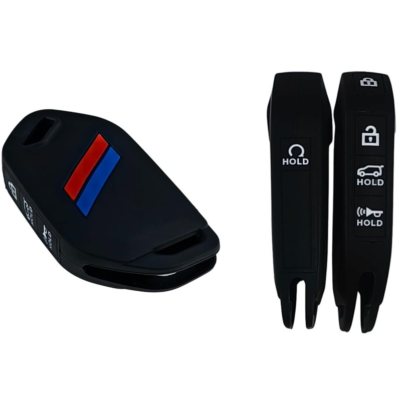 REPROTECTING Silicone Rubber Key Fob Cover Compatible with 2024 2023 Kia Telluride (Black with White/Black with red, 5 Buttons)
