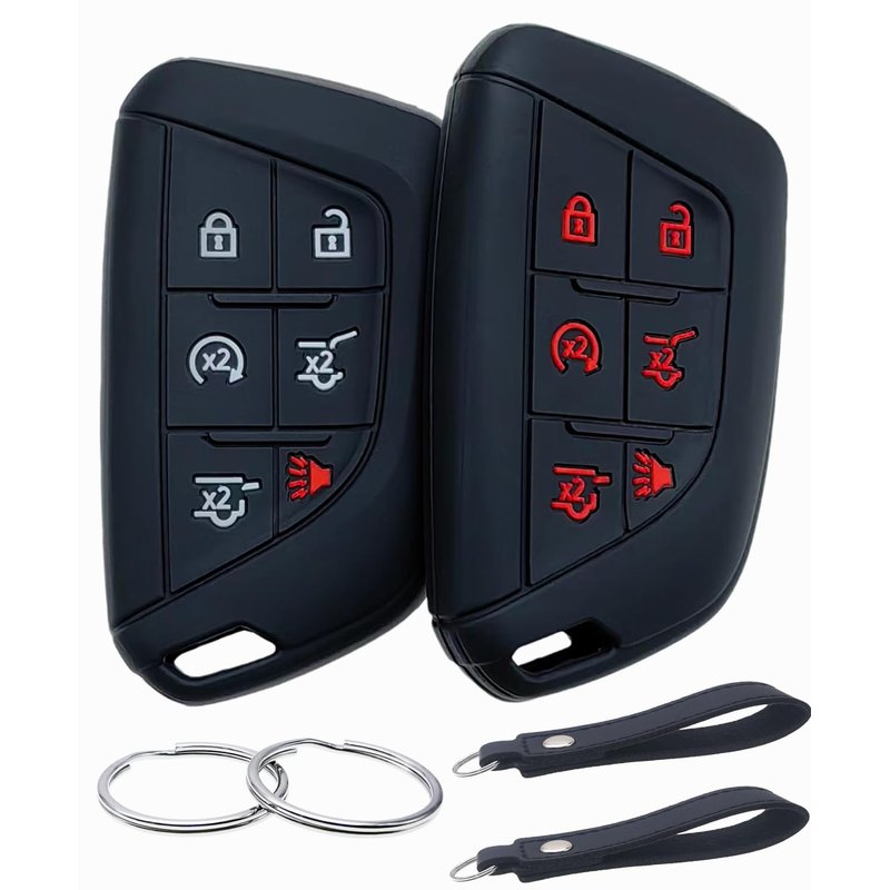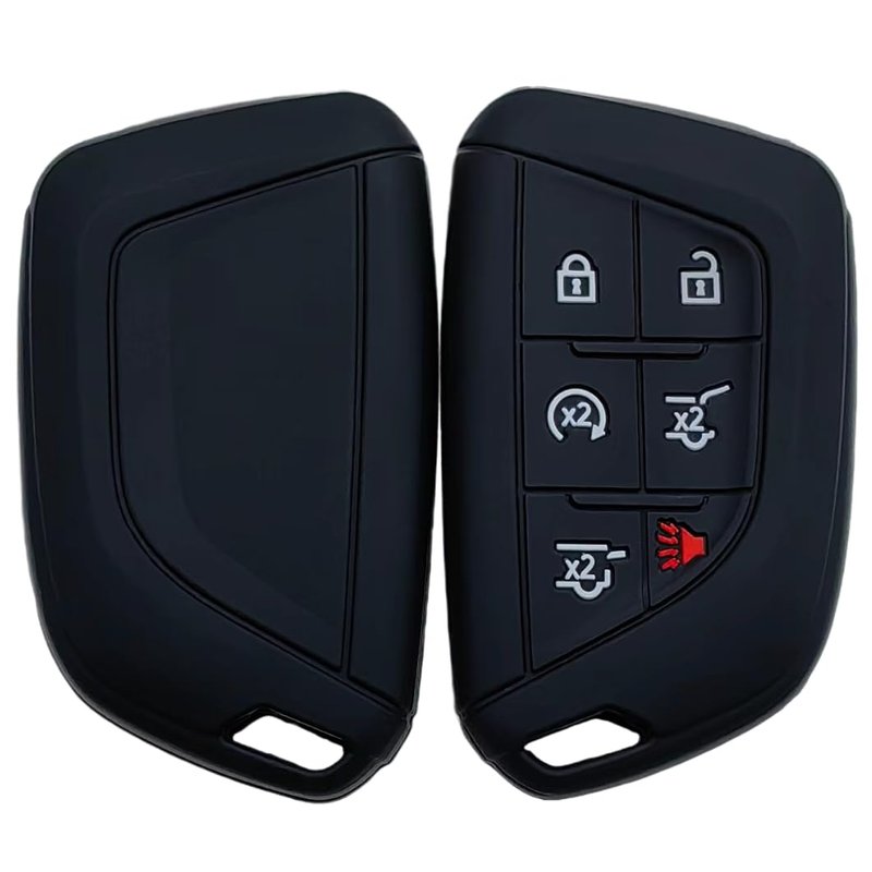 REPROTECTING Silicone Rubber Key Fob Cover Compatible with Cadillac Escalade Escalade ESV (Black/Black, 6 Buttons)