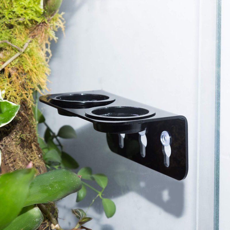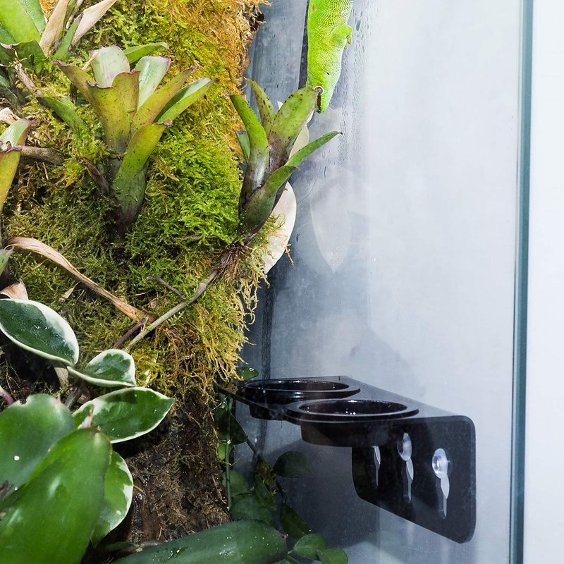 - Unique Design: Special designed for arboreal reptiles,fits their eating habits. Double bowl design ,three strong suction cups with small handle,easy to take down and change the place ,easy to use and easy clean by water,strong stability,will not be stumped by pets to stain the nest.Suit for all kinds of glass tanks and acrylic boxes.