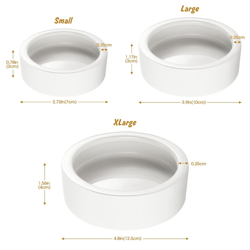 - ✔Anti-Escape Design — The Inward-curved walls, the meal worms is difficult to escape. Make feeding more easier, we offer two size choice: diameter Small - 2.75in (7cm), Height 0.78in (2cm) / Large - 3.93in (10cm), Height 1.18in (3cm)/ XLarge - 5in (12.7cm), Height 1.5in (4cm)