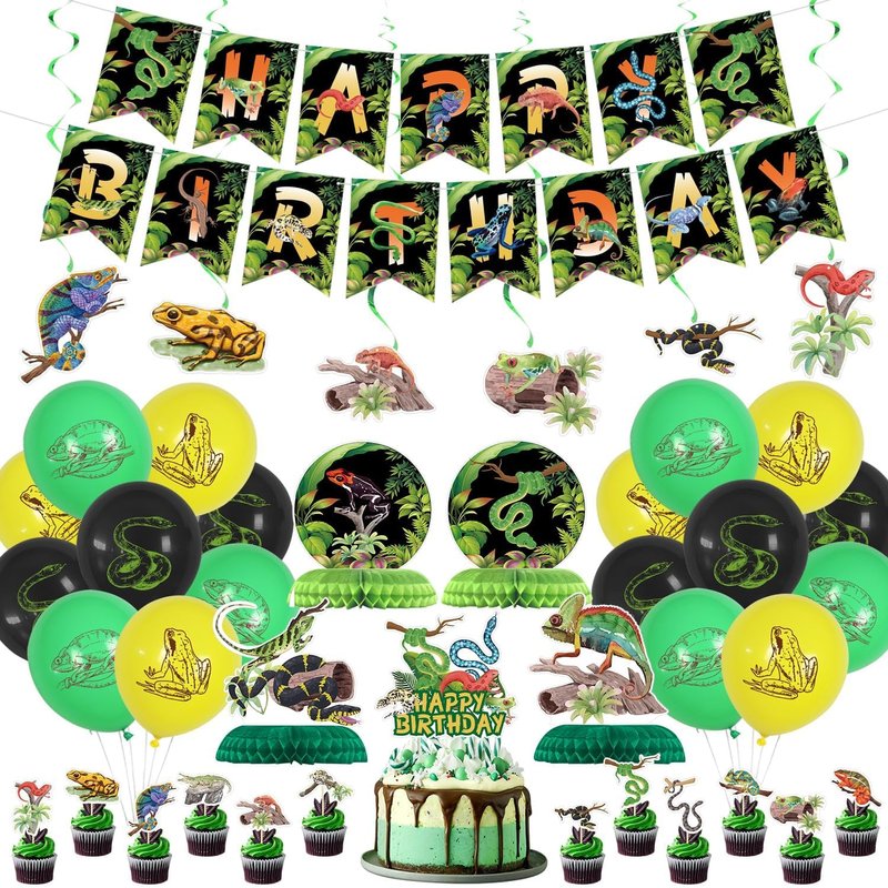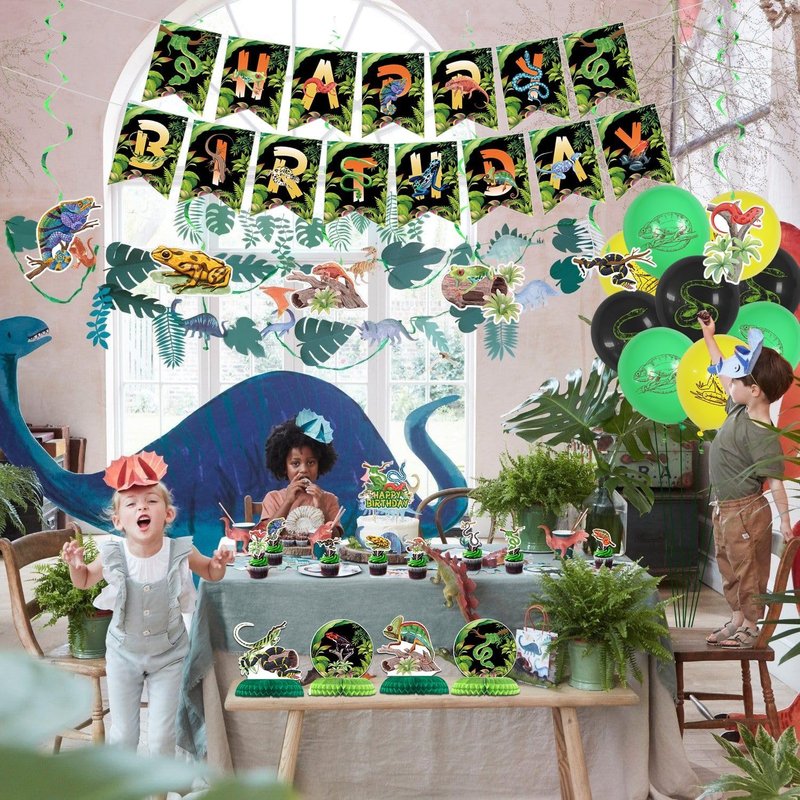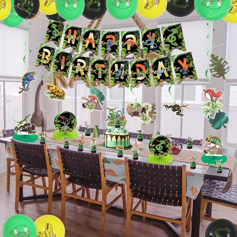 Get ready to dive into a fun-filled reptile -themed adventure with these reptile animal birthday party decorations!
