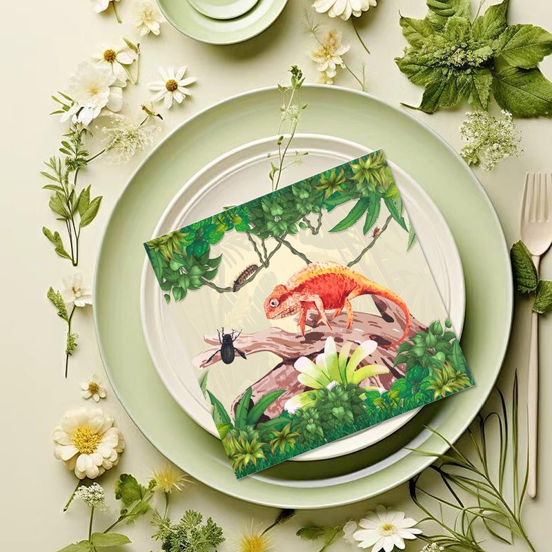 - 【Reptile Napkins】: Featuring Jungle Lizard, bug and tree, these dinner paper napkins are beautifully printed and fade-resistant, which can give off a stylish and vibrant vibe. The intricate design creates an eye-catching display that can leave a lasting impression on your guests.