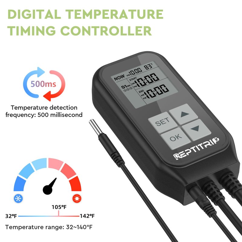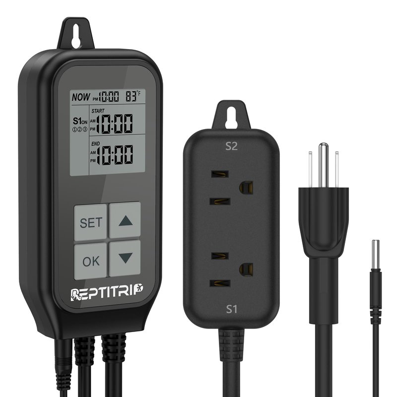 REPTITRIP Reptile Thermostat, Reptile Light Timer for Temperature and Lighting Control, Day-Night Timer Thermostat with Reptile Thermometer for UVB Light, Heat Lamp, Heating Pad, 10A 1250w
