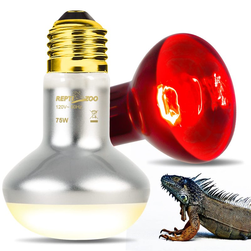 REPTIZOO Reptile Heat Lamp Bulb Combo Pack can meet your pet's 24-hour heating needs. One UVA Daylight Heating Lamp, adopts cleaning sand manufacturing process which the light is soft and more suitable for reptiles growth. One infrared heat lamp, provides ambient heat effectively, emits soft moonlight and don't disturb the reptile's day/night cycle.