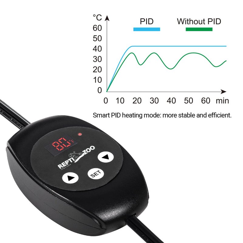 - 【Dimming Reptile Thermostat】: The dimming thermostat is a very accurate temperature control method. It's designed specifically for controlling heat lamps, smart PID heating mode is more stable and efficient which can improve bulb lifetime. Although it’s perfect for heat bulbs, it’s also suitable for almost any heaters. (DO NOT use it with sunlamp)