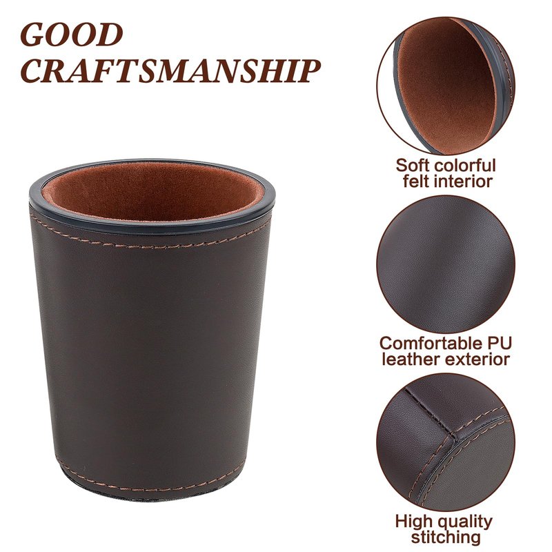 - The cube dice cups are made of PU leather, lined with soft fine felt, sturdy and comfortable.