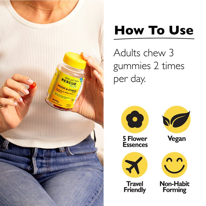 - BACH RESCUE PLUS MOOD & STRESS SUPPORT GUMMIES: Supports your body’s stress response & promotes a sense of calm