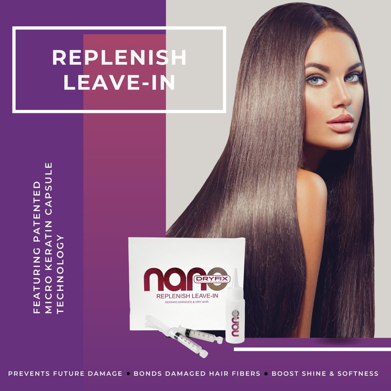 - RESTORE, HYDRATE & REPAIR: A deep conditioning keratin hair treatment, Nano DryFix Replenish Leave-In with keratin is an advanced micro therapy emulsion that has been specially formulated to prevent breakage and break the cycle of hair degradation and dryness by permeating the cuticle of the hair and reconnecting shredded hair fibers.