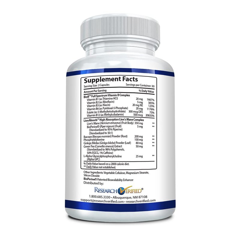 Research Verified Memory Booster - Nootropic Supplement - Enhance Cognition and Memory - Lion’s Mane, Ginkgo Biloba, BioPerine - 60 Capsules - Non-GMO - Made in The USA