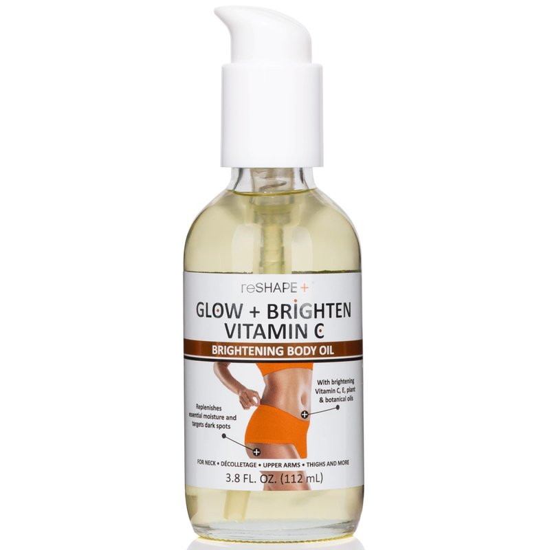 - RADIANT SKIN – This ReShape+ Vitamin C Body Oil infused with Turmeric & Botanical Oils helps refine the look of aging skin and uneven skin tone. This Brightening Body Oil also helps refine the look of discolored skin, age spots, sun damage from sunspots, rough skin texture, hyperpigmentation, acne, blemishes, & more. A delicate silky body oil that replenishes essential moisture and soaks into dry skin for a fresh and luminous look.