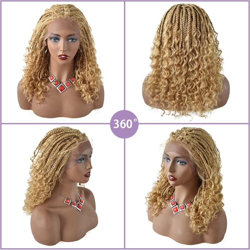 - 🍓【Uniform Elegance】Briaded lace front wigs is very breathable, allowing the scalp to breathe freely, Cornrows braids wigs for black women looks more natural, front edge invisible.Box braid wigs for black women material made of high quality low temperature flame-retardant synthetic fiber.18 inch natural synthetic braided curly wig here, 92braids in total.when you wear this box braid wigs with4 3/4"x12 1/2"Lace area, Natural edges with pretty pre-plucked baby hairs allow for a seamless hairline