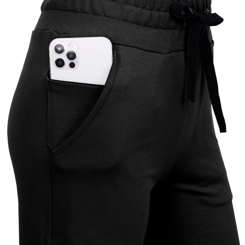 - Drawstring Capris with Pockets: The pockets have two in front deep pockets and an invisible zipper for carrying your phone, wallet, keys, etc. Wide leg Capri sweats have a flattering shape and drape nicely from the hips to the leg. Women's capris and cropped pants, loose Capri workout pants, lounge pants capris.