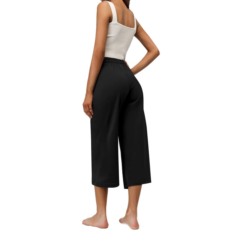 RESHE Women's Capri Yoga Pants Loose Soft Drawstring Workout Sweatpants Causal Lounge Pants with Pockets (Black, L)
